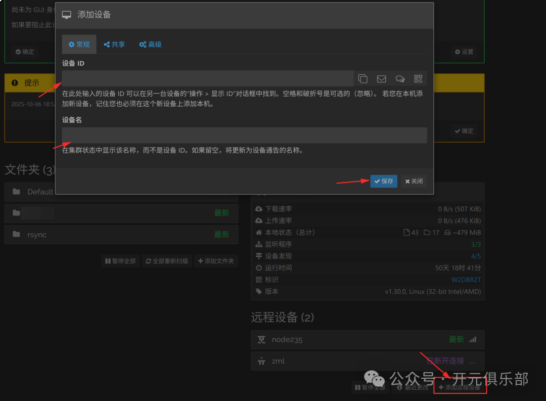 http://127.0.0.1:8384),查看“Default Folder”和“rsync”文件夹是否仍在报错。 - • 或检查日志(