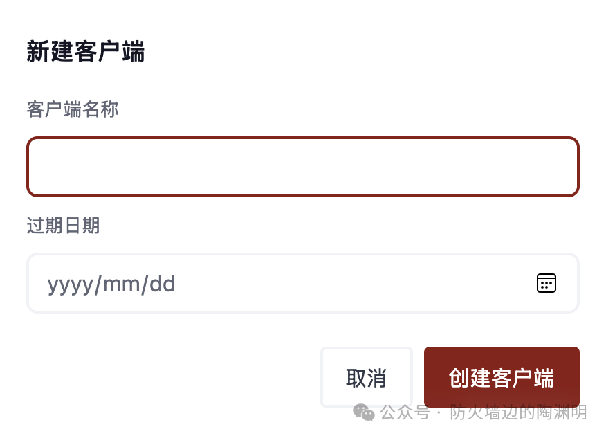 至此 WireGuard 的安装就完成了,下一步就是添加客户端:填写客户端名称即可完成创建。