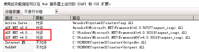 角色服务先装好“ASP.NET”和“.NET扩展”,然后命令行执行以下命令注册ASP.NET 4.0: