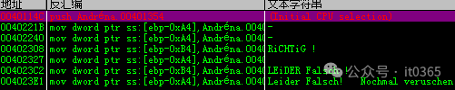内容不多,功能也比较简单,搜索关键字符下断点找关键位置。这次我们换个姿势来找关键位置。不用查字符串了。