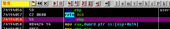 注意观察,这里调用的地址是不是最后一个它是程序自身的地址,7开头都是系统DLL的地址了。