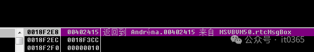 看到API内部有个CALL压入了我们需要的值在堆栈窗口看到