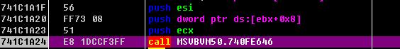 0040229E   .  50            push eax                                 ; /var18 = NULL0040229F   .  51            push ecx                                 ; |var28 = 0018F3DC004022A0   .  C745 A8 00000>mov dword ptr ss:[ebp-0x58],0x0          ; |004022A7   .  C745 94 08800>mov dword ptr ss:[ebp-0x6C],0x8008       ; |004022AE   .  FF15 48414000 call dword ptr ds:[<&MSVBVM50.__vbaVarTs>; \__vbaVarTstEq