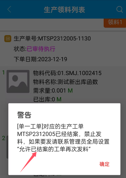 点晴模切ERP-如何设置已结案的生产工单禁止再领料退料