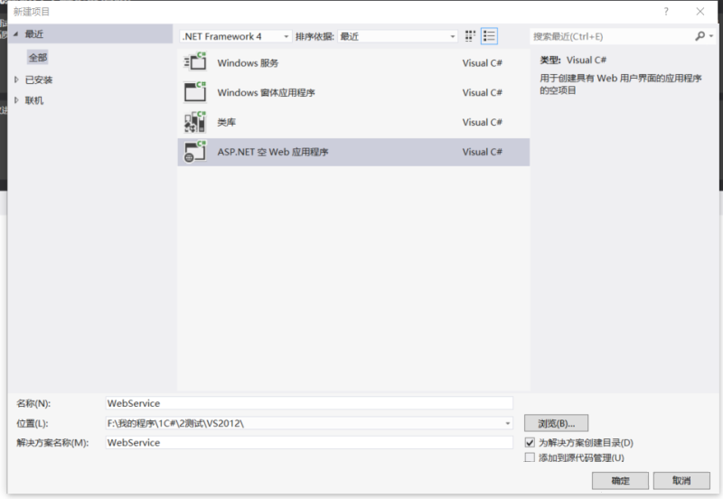今天演示一下C#经常用到接口形式WebService,C#创建WebService接口开发软件VisualStudio2012一.创建一个ASP.NET空Web应用程序二.添加新项Web服务三.直接运行例子四.创建一个新的测试例子其中可以用Description=测试来描述WebService方法代码:[WebMeth...