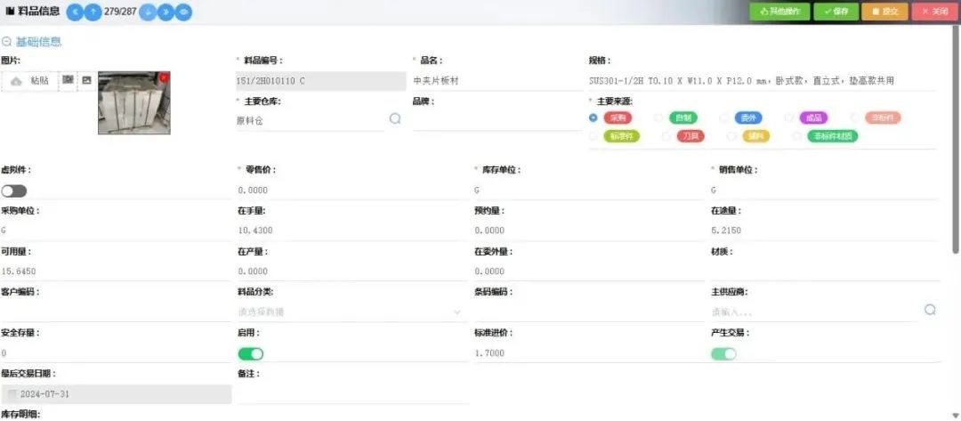 操作步骤:系统管理——物料管理——物料信息维护;进入页面后如下图操作: 点击编辑进入修改页面;修改后点击提交即可,修改页面如下图所示: