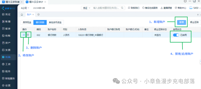 账户新增操作:操作步骤:系统管理——财务基础资料——单位账户管理,如下图所示: 录入账户基础信息,点击“新增”完成。账户编辑操作:选择对应的账户,修改对应内容,点击”编辑“按钮完成,如下图所示: