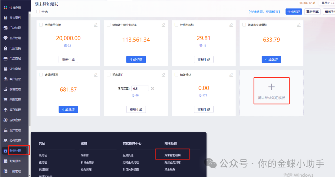 企业实际业务中,碰到需要做长期待摊费用的业务。在云星辰系统中,如何自动分摊,不用我每月手工计提,有时还忘记计提​例如:每月房租分摊,年初一次性付房租24000,按月分摊。操作方法,通过【账务处理】-【期末智能结转】,新增自定义模板公式设置如下,很容易操作的哈~生成凭证看下面:温馨提示:一年到期后要禁用这个不需要的模板,...