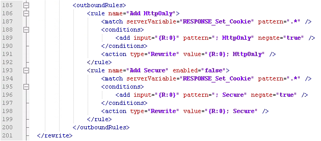 <add input="{R:0}" pattern="; Secure" negate="true" />