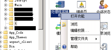 ①.单击选择需要设置权限的文件夹,在右边视图中双击打开"处理程序映射":