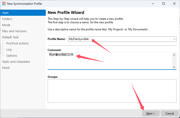 4、给备份任务命名,写上备注,然后点击“Next