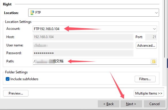 然后在Path中选择FTP服务器上的目的备份文件位置,如果没有合适的目录,那么可以立即创建一个新的目录用于同步备份。