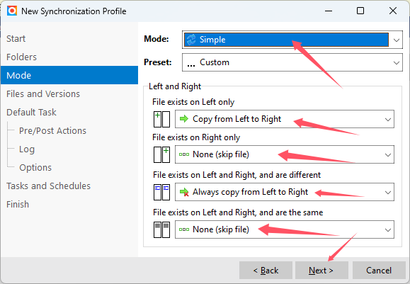 Mode选择“Simple”简单备份方式;