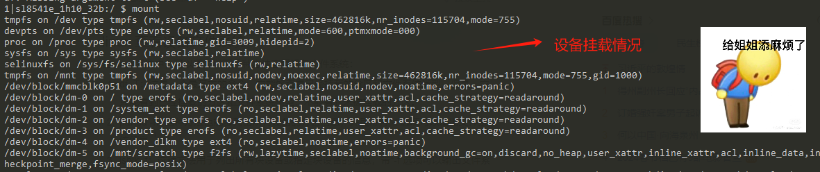相关挂载情况如下: Step 2. 结合dev/kmsg节点,初始化log系统,并在第一阶段开始时,打印第一条log none [ 1.004958]c1 init: init first stage started! Step 3. 加载内核驱动模块,第一阶段加载的内核模块如下: none [ 1.012653]c1 init: Loaded kernel module /lib/modules/sprd_wdt.ko [ 1.020197]c0 init: Loaded kernel module /lib/modules/sc2721-regulator.ko [ 1.022427]c0 init: Loaded kernel module /lib/modules/nvmem-sc27xx-efuse.ko [ 1.026126]c0 init: Loaded kernel module /lib/modules/spool.ko [ 1.033668]c0 init: Loaded kernel module /lib/modules/sipx.ko [ 1.047553]c0 init: Loaded kernel module /lib/modules/seth.ko [ 1.048526]c0 init: Loaded kernel module /lib/modules/usb_f_vser.ko ... Step 4. 挂载分区。创建/first_stage_ramdisk并挂载,然后将根目录切换到/first_stage_ramdisk,并挂载system、vendor 、product等系统分区,挂载信息如上。 4.4.4 SetupSelinux该阶段主要是初始化Selinux权限相关业务,同时在业务流程最后一步时,重新执行system/bin/init程序,再次启动下一个阶段SecondStageMain。 c @system\core\init\selinux.cppint SetupSelinux(char** argv) {