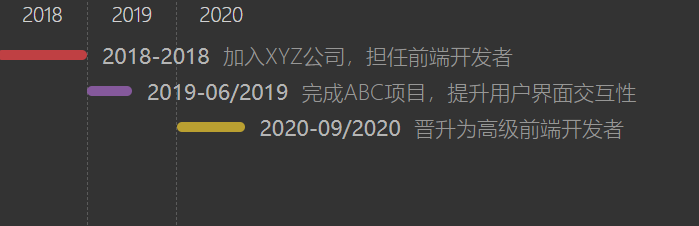 • 个人简历网站:展示个人的工作经历和项目周期,使简历更加直观和具有吸引力。