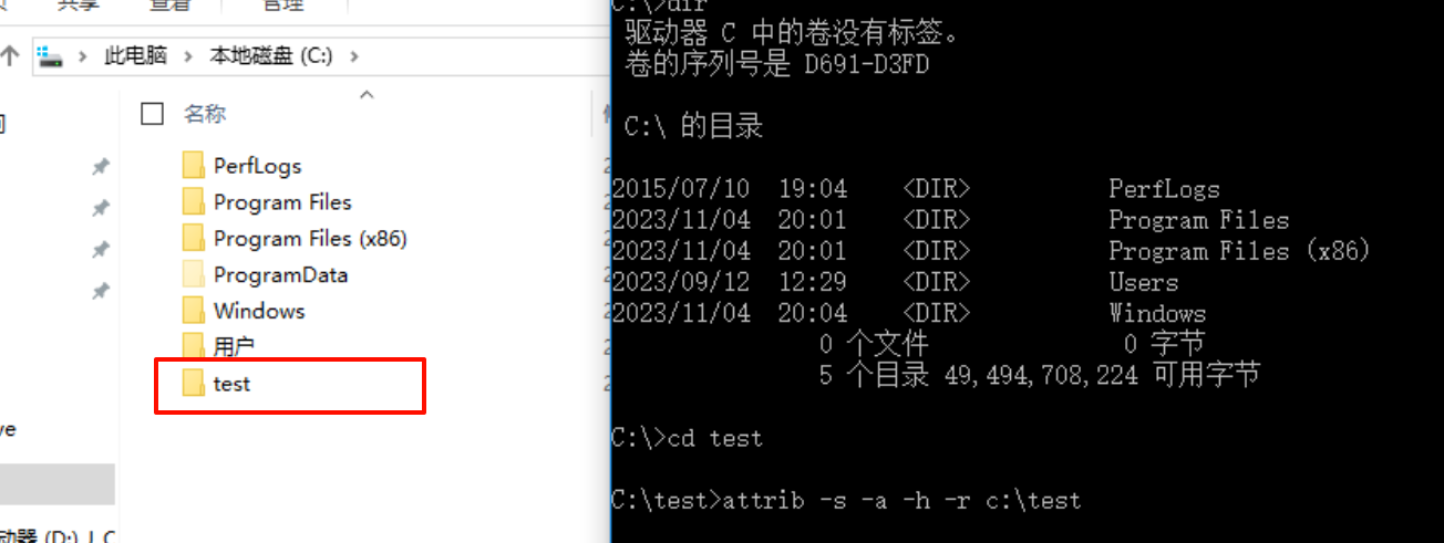 attrib +s +a +h +r c:\test