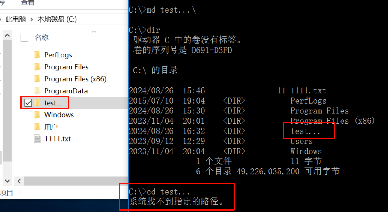 创建文件名称为 test...\ 显示名称是 test...