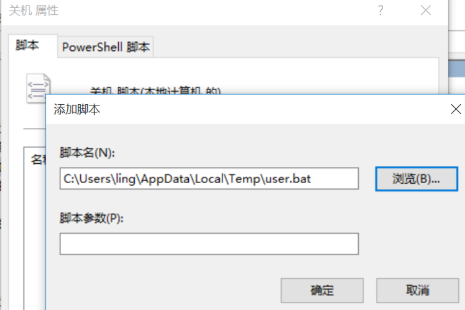 在关机属性中添加
