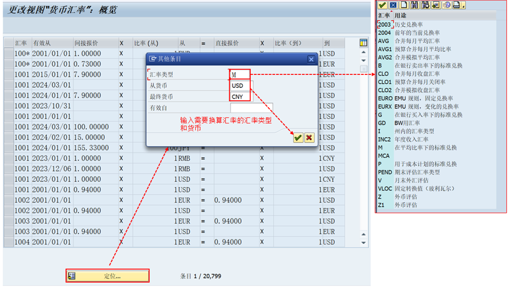 可以按上面步骤先定位到需要维护的汇率类型。