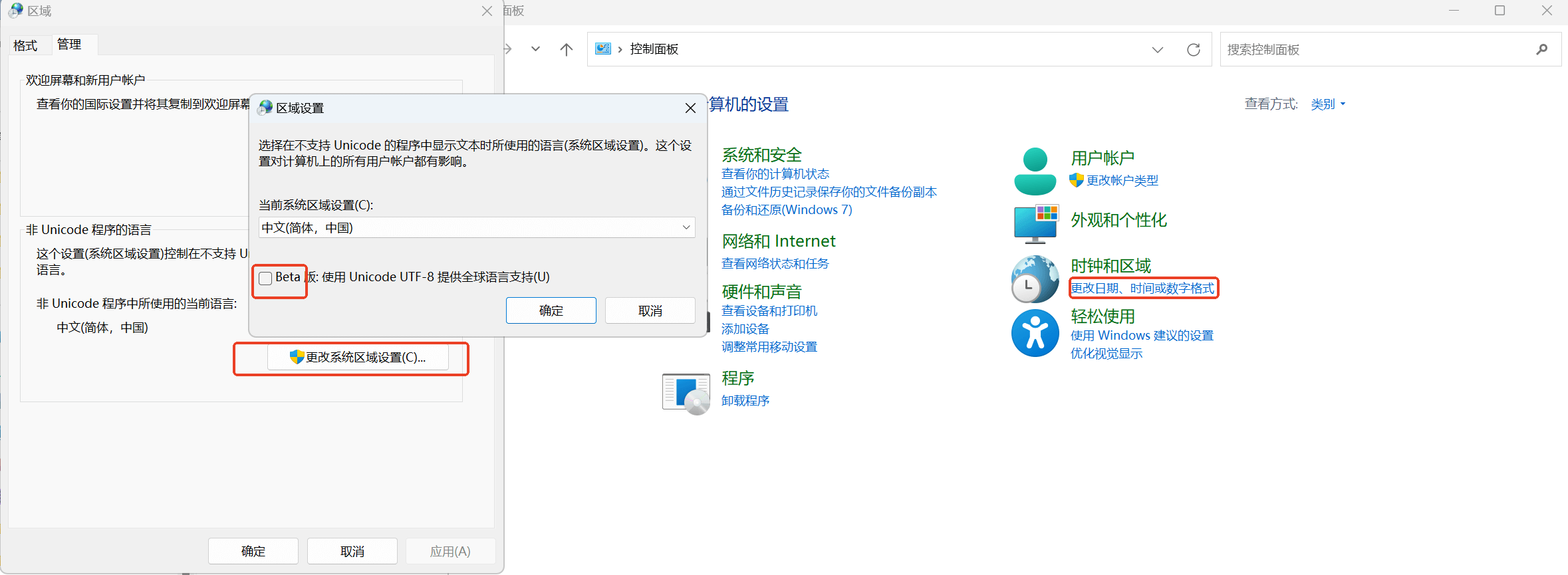 当然现在Windows系统也能设置成UTF-8编码了,如下图1所示。但是还是建议不要轻易这么设置,Windows系统没有将UTF-8编码设置系统的默认编码主要也是为了保证兼容性,在Unicode编码大规模使用之前本地码还是使用了相当长的时间的,有相当数据量的遗留程序都是使用的本地码。为了避免大规模应用程序乱码问题的出现,不能要求每个用户都这么设置。