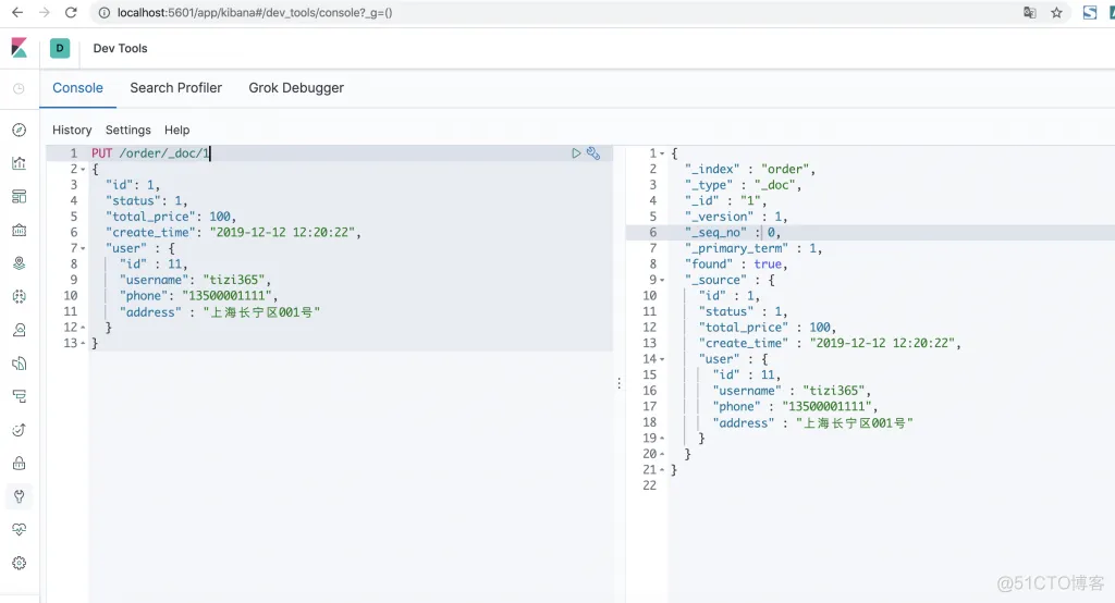 提示:虽然文档的格式没有限制,可以随便存储任意格式数据,但是,实际业务中不会这么干,通常一个索引只会存储格式相同的数据,例如:订单索引,只会保存订单数据,不会保存商品数据,否则你会被自己搞死,自己都不知道里面存的是什么数据。