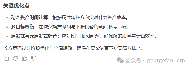 • 负载均衡调整:将高负载机台的部分订单迁移至低负载机台,需重新评估换产时间。