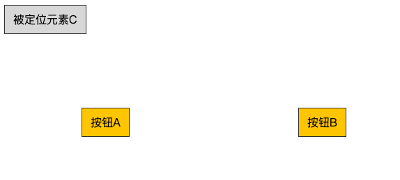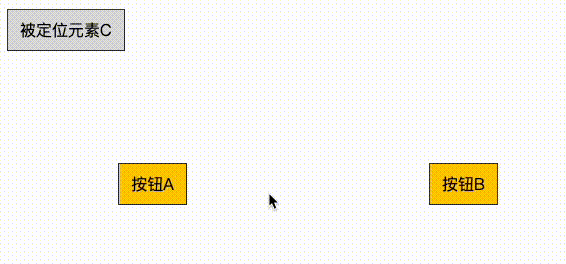 假设我们在页面上有这么三个元素:按钮A、按钮B、被定位元素C,其中被 元素C 是一个插入到任意地方,且为绝对定位的元素,核心 CSS 代码如下: