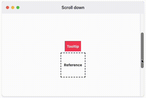 我们以一个功能比较强大的 Popover 库 floating-ui 举例,其官网展示了如下的一个功能,当元素在滚动过程中,如果原本 Popover 弹窗被遮挡,会自动进行位置移动,将弹窗重新调整到可视区域,效果如下: