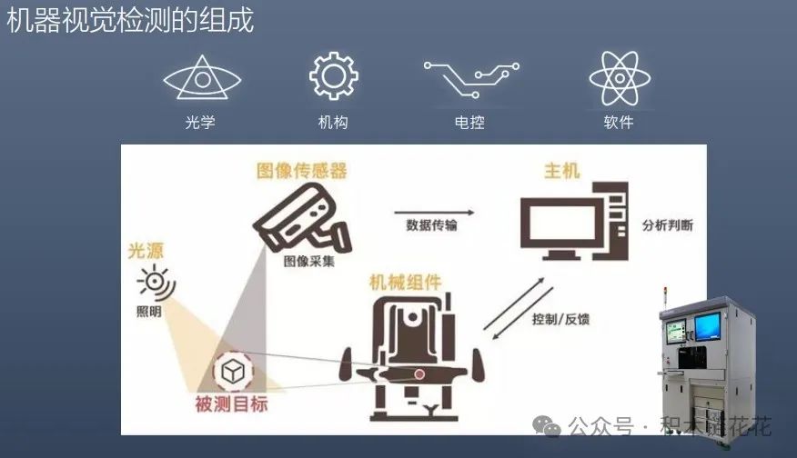 机器视觉检测系统的核心构成主要包括光学系统、机构系统、电控系统和软件系统