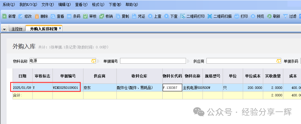 也可以在(仓存管理)——(验收入库)——(外购入库单维护)这里打开,功能是一样的,只是打开路径不同。