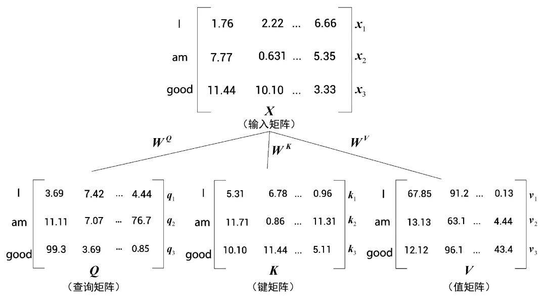 的初始值完全是随机的,但最优值则需要通过训练获得。我们取得的权值越优,通过计算所得的查询矩阵、键矩阵和值矩阵也会越精确。