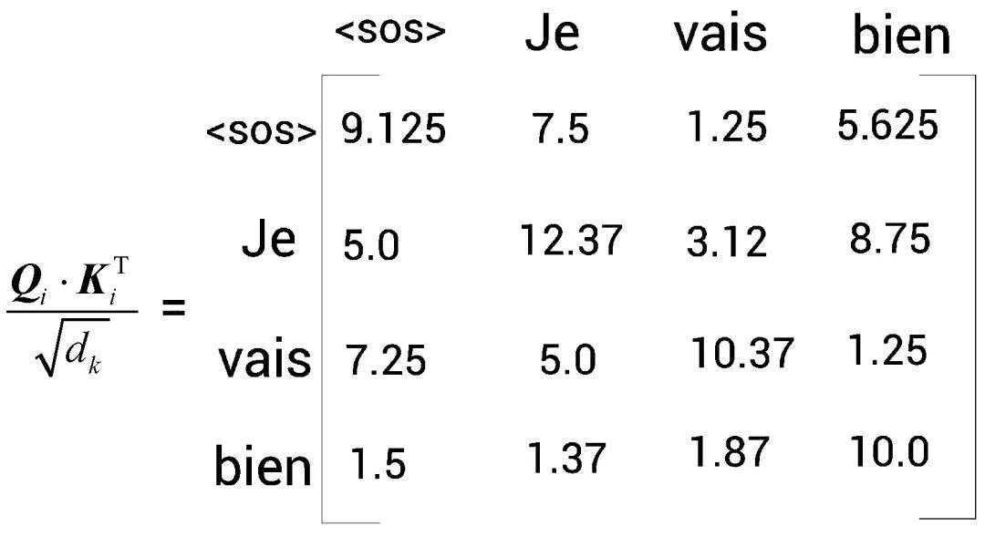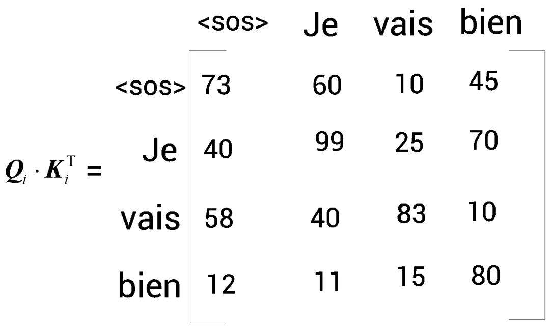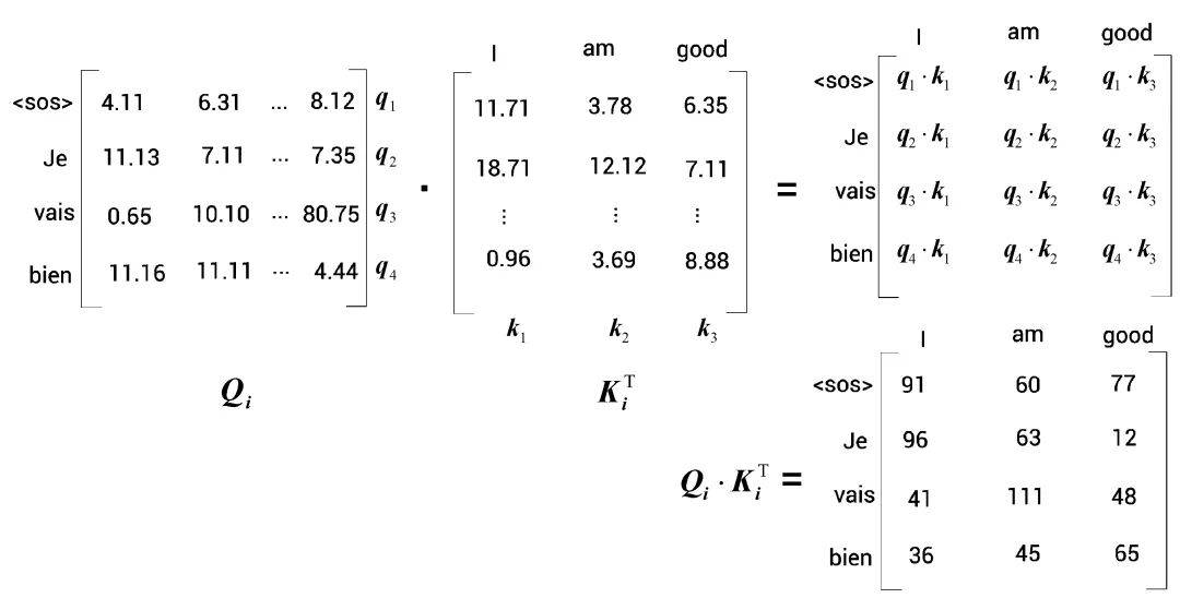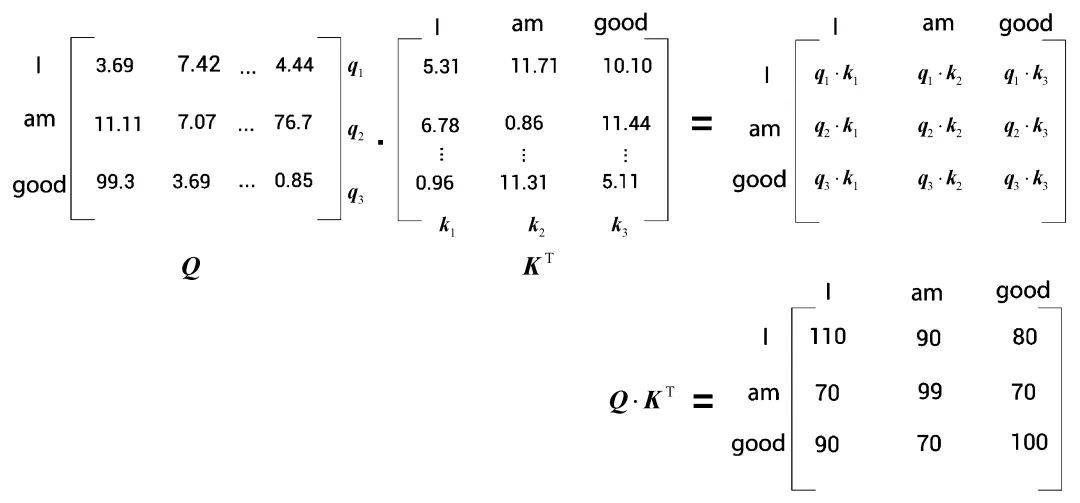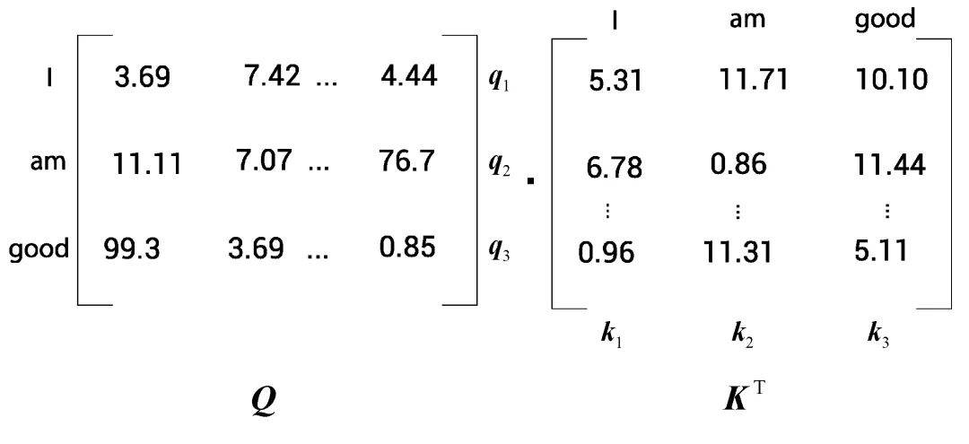 图 1-55 显示了查询矩阵与键矩阵的点积结果。