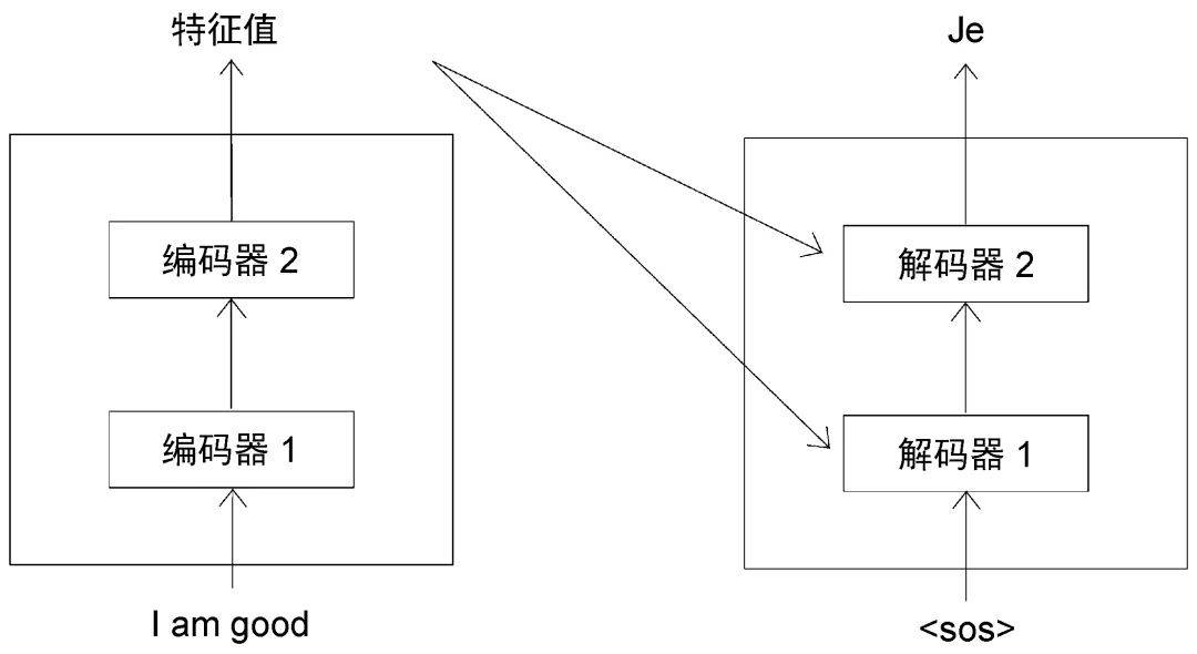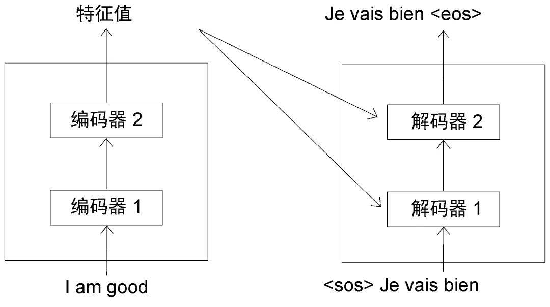 • 解码器 2 进行同样的处理,并输出目标句的特征。