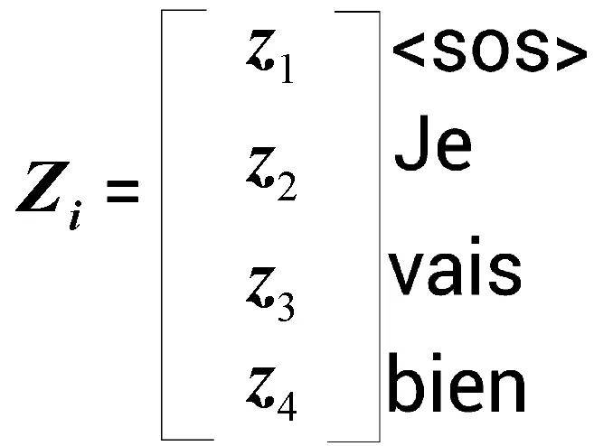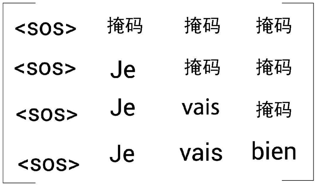 从概率矩阵中,我们可以看出索引 2 的概率最高。所以,模型预测出的下一个词位于词汇表中索引 2 的位置。由于 vais 这个词位于索引 2,因此解码器预测目标句中的下一个词是 vais。通过这种方式,解码器依次预测目标句中的下一个词。
