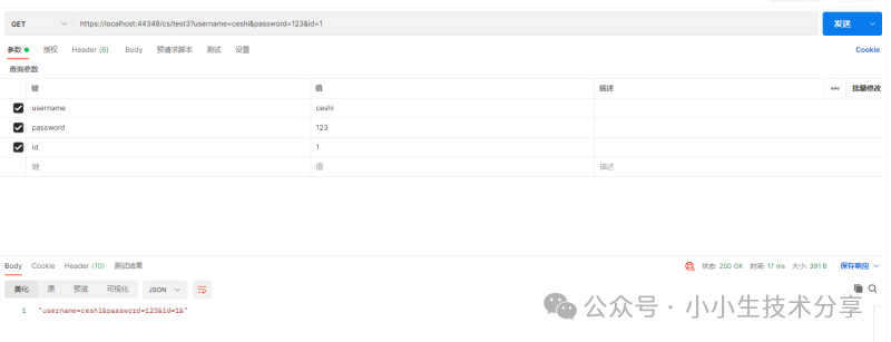 1.创建一个Get接口,不指定入参自动接收地址栏参数,把入参返回回去代码: