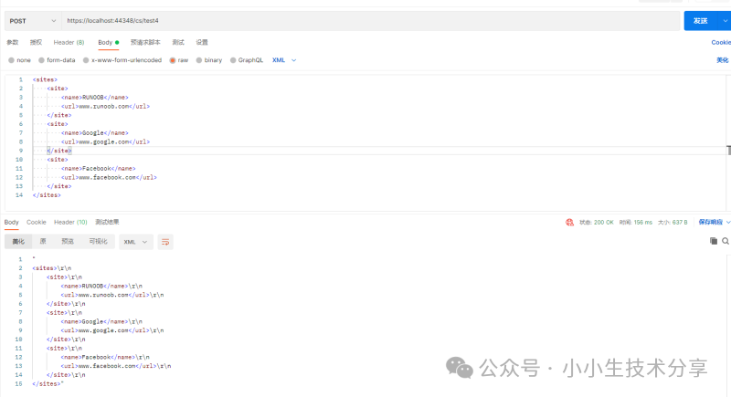 2.创建一个Post接口,接收xml格式入参并返回回去