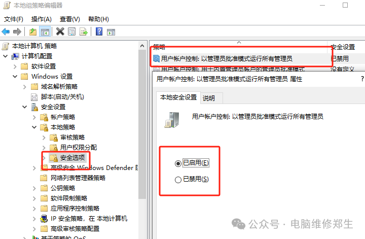 实际上,解决这个问题的方法并非如想象中那般复杂。接下来,就让我为大家详细地分享一下具体的解决办法。 第一步,我们需要按住键盘的”WIN+R“键 。在打开的运行框中,我们正确地输入: gpedit.msc 的组策略命令,然后再按下回车键确认。 随后,我们下拉找到“本地策略”,再双击“安全选项”。在 最后,我们将其打开,然后果断地勾选里面的“已启用”。如此一来,之前困扰我们的权限问题就能迎刃而解,让我们在使用电脑时更加顺畅无阻。 是不是很简单呢,下次遇到这种问题,可以试试这样操作。 阅读原文:原文链接 该文章在 2025/7/7 11:54:24 编辑过 |