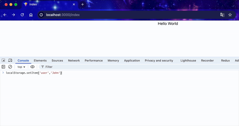 // 使用方式与localStorage相同sessionStorage.setItem('user''john');