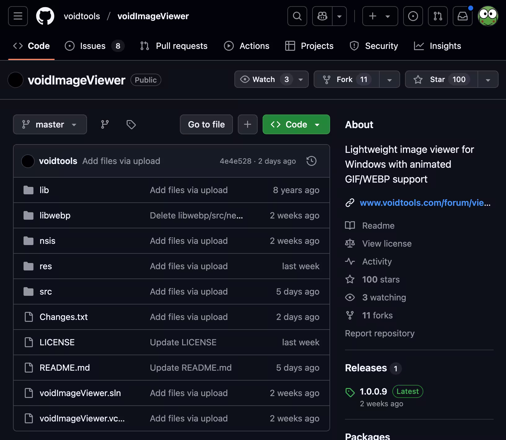 ![]() 一款非常简洁、快速的图片查看工具,支持 BMP、GIF、ICO、JPG、TIF 和 WEBP 格式,有幻灯片模式,支持逐帧查看动图格式,可以无边框查看图片,有置顶模式、可简单的旋转图片、移动图片等等。 唯一的遗憾是暂时不支持 AVIF 和 HEIC 格式,以及没有中文。 还有就是,voidImageViewer 开源,不过其在 GitHub 只有 100 个星星,真的不像是知名开发者的作品啊: ![]() 功能非常简单,就是一款轻量级看图工具,青小蛙觉得适合当作默认看图工具,在 Windows 11 下响应速度也非常快。 就是不知道 voidImageViewer 什么时候能被开发者从论坛拿到正式页面上,以 Everything 的受欢迎程度,放到官网上远远不止 68 颗星啊。以及,这次时隔9年的更新内容: 2025 年 5 月 22 日,星期四 版本 1.0.0.9