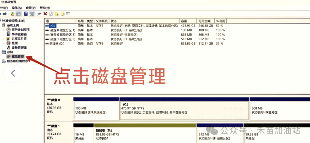 仔细观察磁盘管理界面: