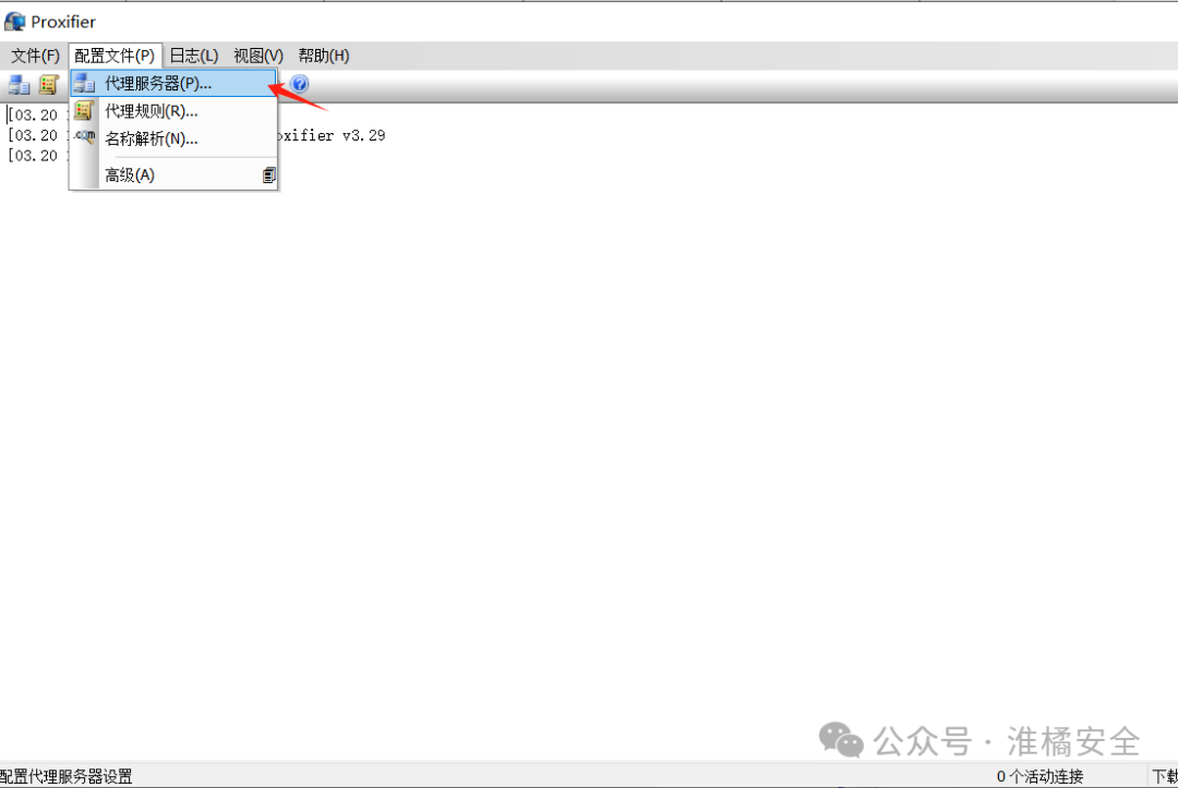 2) 在Proxifier的“配置文件”菜单上,单击“代理服务器”选项。