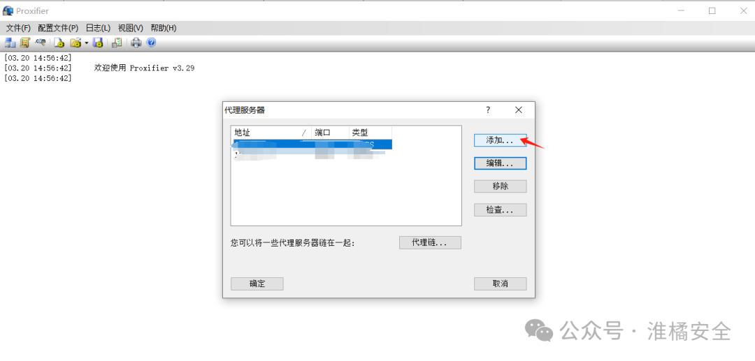 3) 在弹出的“代理服务器”对话框中,单击“添加”按钮。