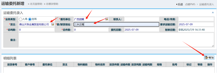 [点晴模切ERP]点晴PMS-新增散货运输委托单-操作流程