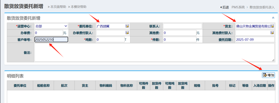 :点晴PMS-新增散货放货委托单-操作流程