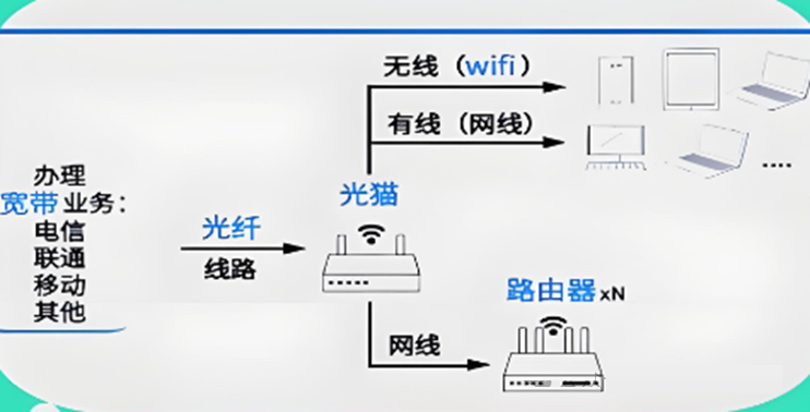 家庭宽带网络的组成就像公路系统一样,有城市间的高速路,有城市内的市政路,有连接用户家或小区的支路、引道。“接入线路”就像连接用户家门口或小区出入口到市政路之间的道路。