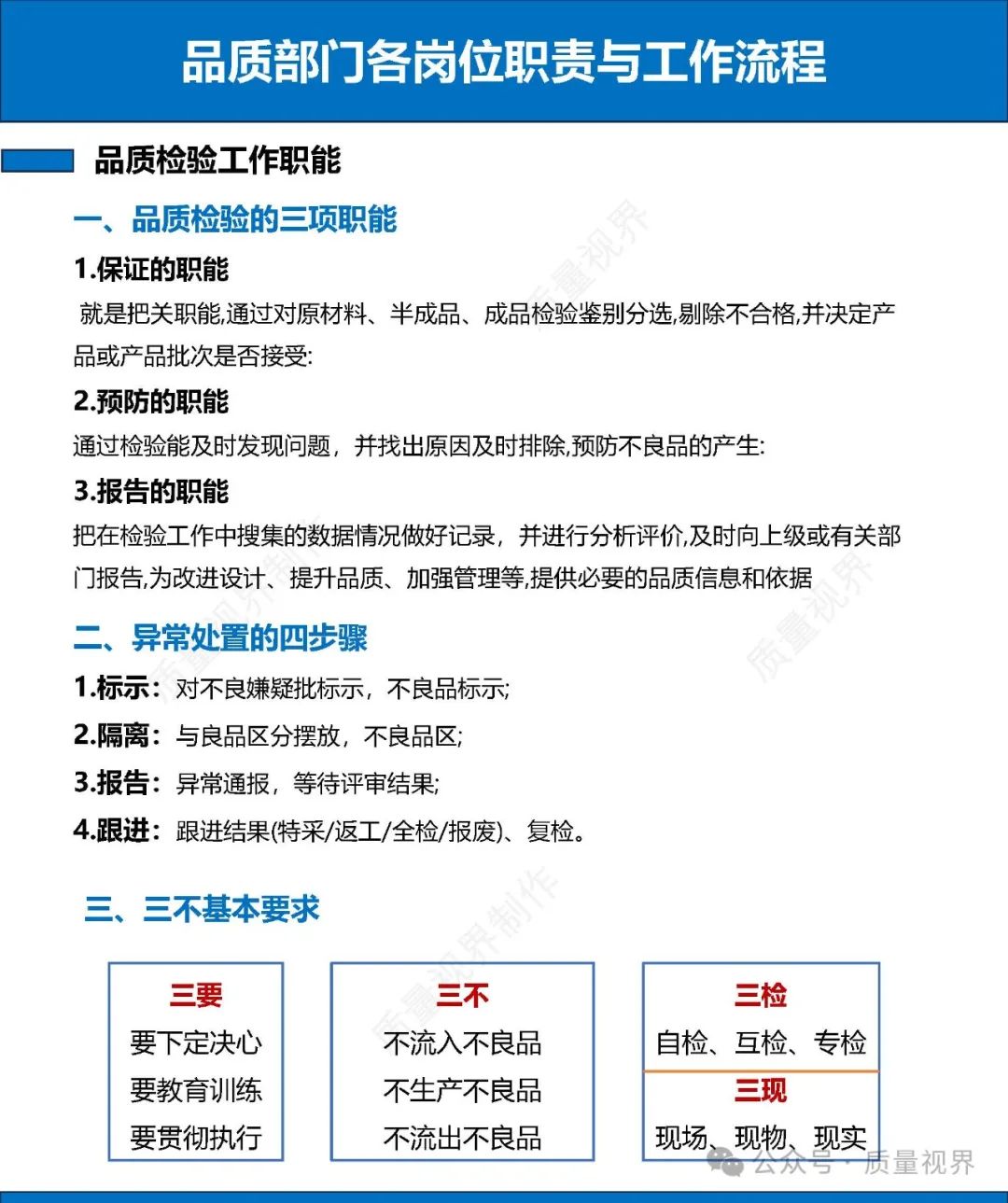 IQC、IPQC和OQC 这三个岗位并不是孤立存在的,它们相互配合,形成了一个闭环的质量管理体系。IQC把控来料质量,IPQC确保生产过程中的工艺合规性,而OQC则在出厂前最后把关。每一个环节都至关重要,缺一不可。