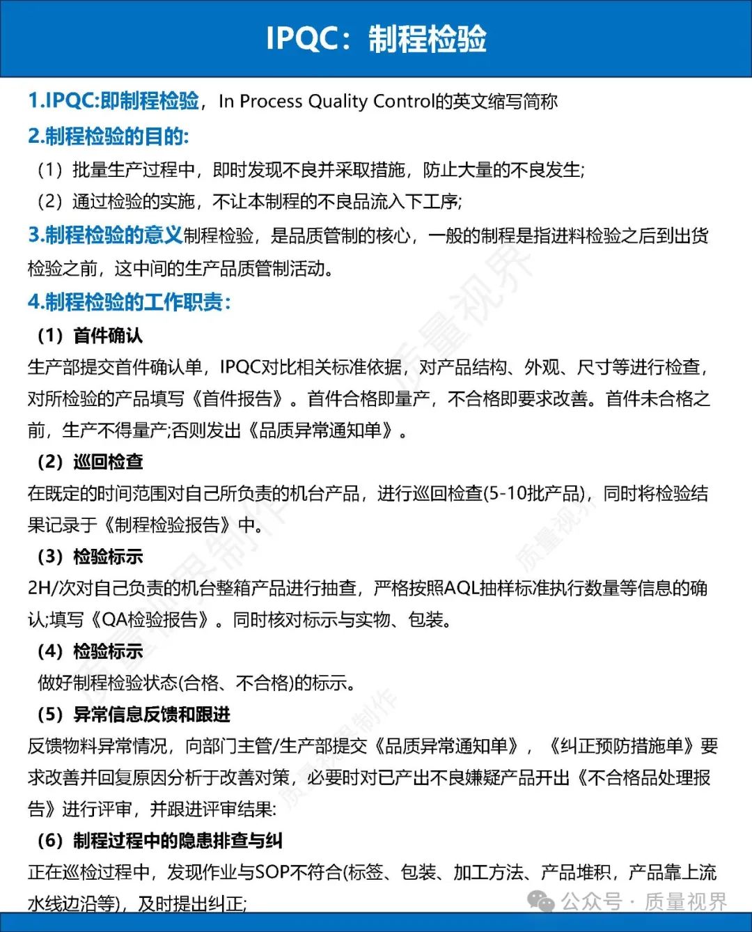 IPQC 是 “In - Process Quality Control” 的缩写,即制程质量控制。