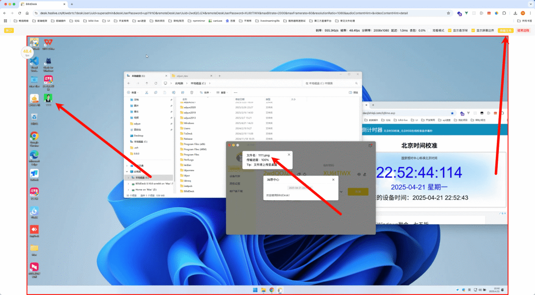 - • 连接后即可看到被控屏幕,支持鼠标键盘控制、传文件