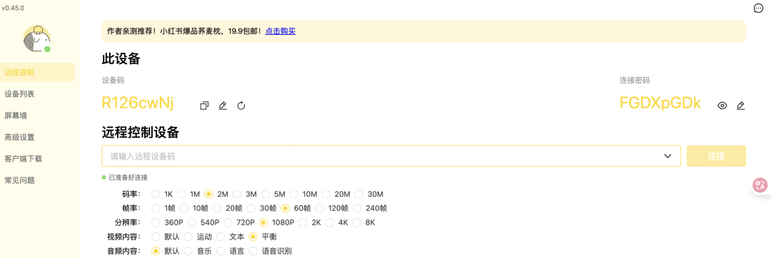 - • 自定义设备码、连接密码、支持 Web/API 自建中继配置